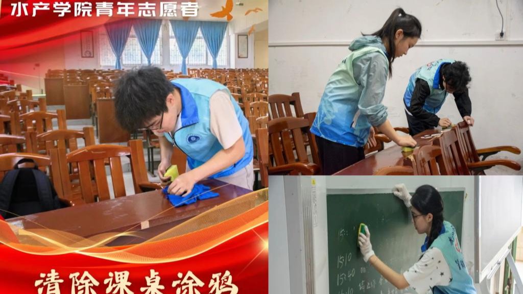 3月5日,水产学院团委组织开展了“清除课桌涂鸦 筑牢学风阵地”志愿服务活动。通过消除课桌上的涂鸦和乱写乱画现象,用实际行动践行新时代雷锋精神。活动现场,党员志愿者们身穿水产志愿马甲,手持清洁海绵、抹布等工具,分组对广学楼12间课室的课桌,黑板,墙壁等进行细致清理。经过大家共同努力,涂鸦满布的课桌变得光洁如新,整个教室的环境得到了明显改善。水产学院将继续严肃考风考纪,加强学风建设,引导同学们端正学习态...