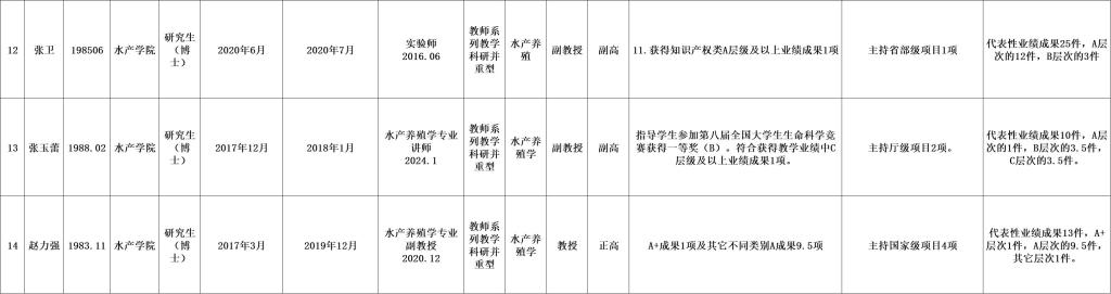 根据学校《关于做好2024年校聘高级专业技术职务申报工作的通知》(校人事〔2024〕2号)要求,经个人申请,学院审核,现对水产学院2024年校聘高级专业技术职务申报人员材料(见附件)进行公示。