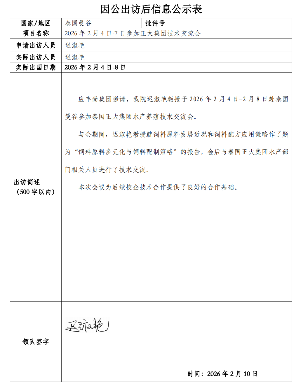 根据《关于进一步规范省部级以下国家工作人员因公临时出国的意见》的要求,现将广东海洋大学因公出访信息予以公示(详见附件)。公示时间为2026年02月10日至02月15日。如有意见,请在公示期内,向相关单位反映。
