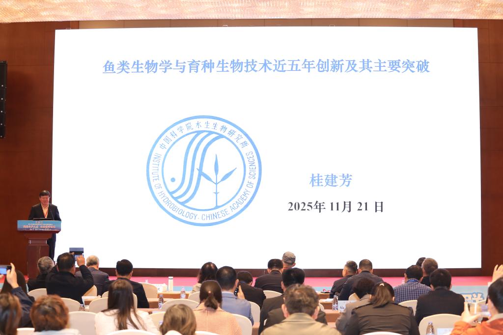 大会报告环节聚焦“学术前沿+实践落地”。中国科学院水生生物研究所桂建芳院士以《鱼类生物学与育种生物技术—近五年创新及其主要突破》为题,系统分享鱼类基因编辑、分子标记辅助育种等技术的产业化应用成果,为解决水产种业“卡脖子”问题提供技术路径;湖南师范大学刘少军院士围绕“鱼类大杂交和微杂交”作报告,其团队研发的杂交鱼品种为养殖提质增效提供实践样本。此外,中国海洋大学、上海海洋大学等十余所高校的水产学科负责人依次发言,介绍各校实践成果。广东海洋大学罗大极研究员则以《九秩风华,牧渔兴邦—广东海洋大学水产学科服务广东海洋牧场建设的探索与实践》为题,展现学校扎根南海、助力地方海洋产业发展的实践成果。