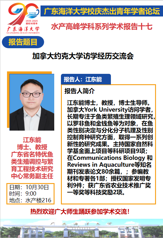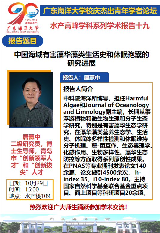 90周年校庆杰出青年学者论坛暨水产高峰学科系列学术报告17-20